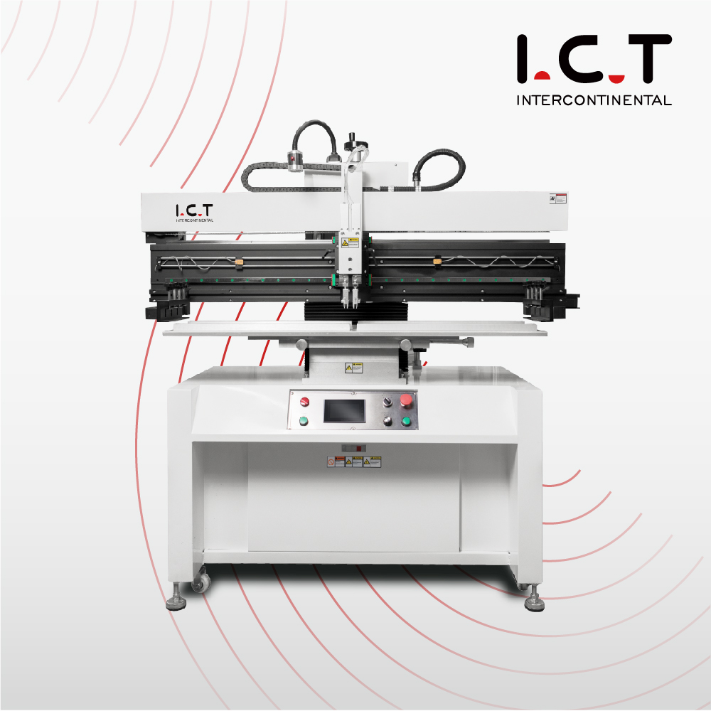 Принтерът с паста за запояване от I.C.T работи като надежден автоматичен шаблонен принтер от неръждаема стомана в SMT линии със среден размер. Рамка от неръждаема стомана и тайвански TBI линейни водачи плюс стъпков двигател SANYO поддържат движението гладко за чиста паста. Натискът на острието и скоростта на печат са регулируеми, прецизният манометър и дисплеят на регулатора на скоростта помагат да се зададе правилната сила. Системата с окачена чистачка прави печата по-равномерен. Модулна универсална маса с устройство за подравняване на печатни платки и рамка пасва на едностранни или двустранни печатни платки. Рамената на рамката на шаблона могат да се регулират за различни размери от 370470 mm до 1050650 mm. Автоматичен печат; стабилно и ефективно качество на печат. Цикълът от <10 секунди прави smt принтера за шаблони идеален за зарядни устройства за телефони или SMT линии за управление на автомобили.