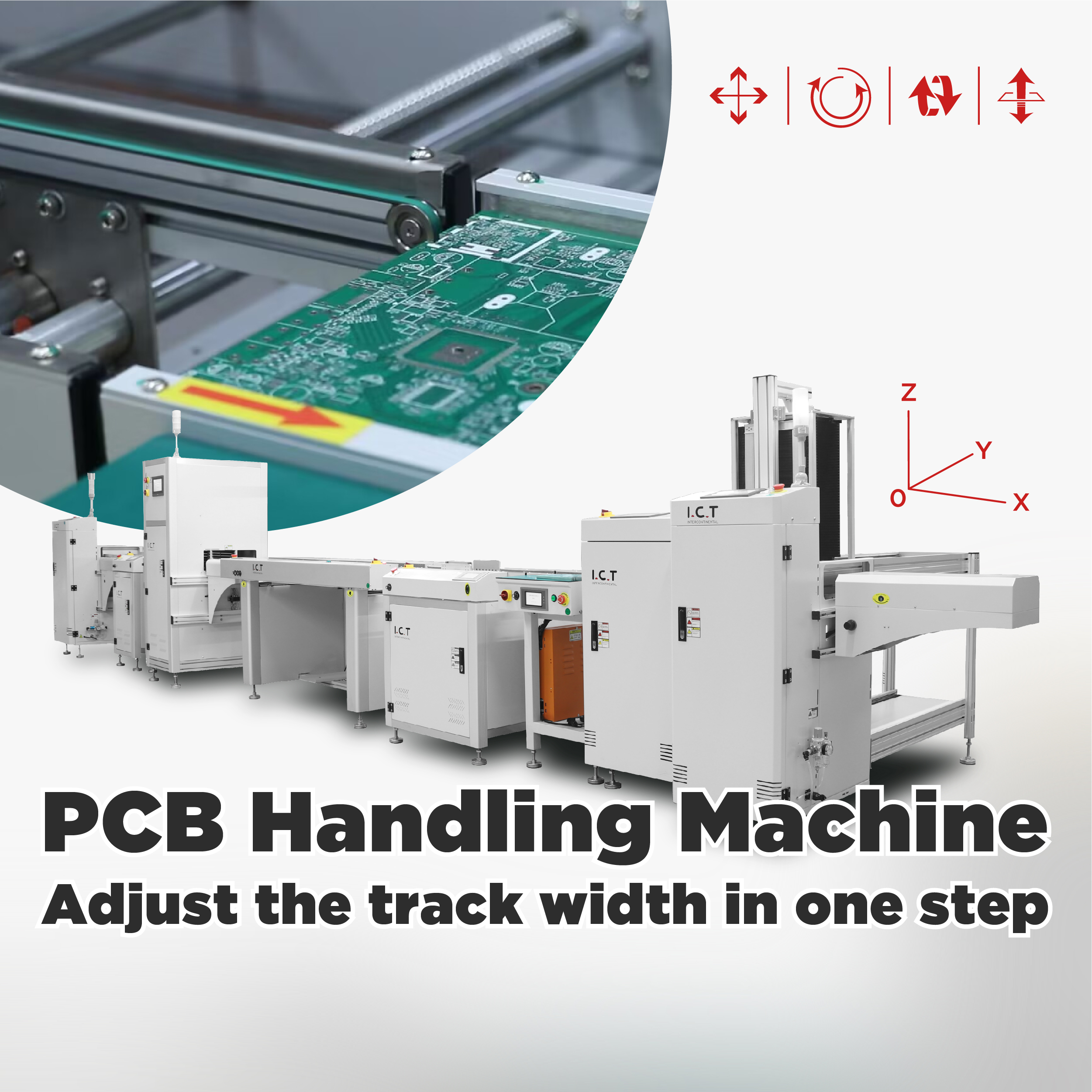 ИКТ предложения Системи за обработка на печатни платки като конвейери, буфер, товарач, разтоварвач, дестакер, контролер на трафика и др.