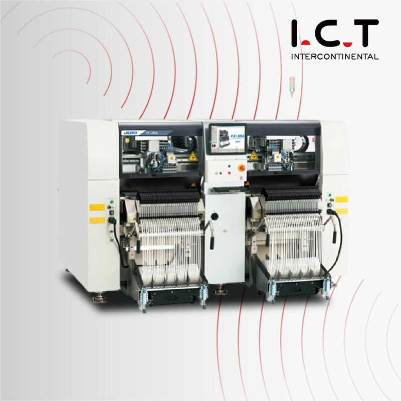 Разработена съгласно концепцията '3E EVOLUTION' на JUKI, непрекъснато развиващата се серия FX е преработена за лесна употреба, ефективност, рентабилност и повишена възможност за разширяване и съвместимост.Използването на нови, високоефективни линейни сервомотори, олекотяването и втвърдяването на главното устройство и преразглеждането на последователността на поставяне позволяват ефективен такт от 0,040 s/чип (90 000 CPH) (оптимални условия).