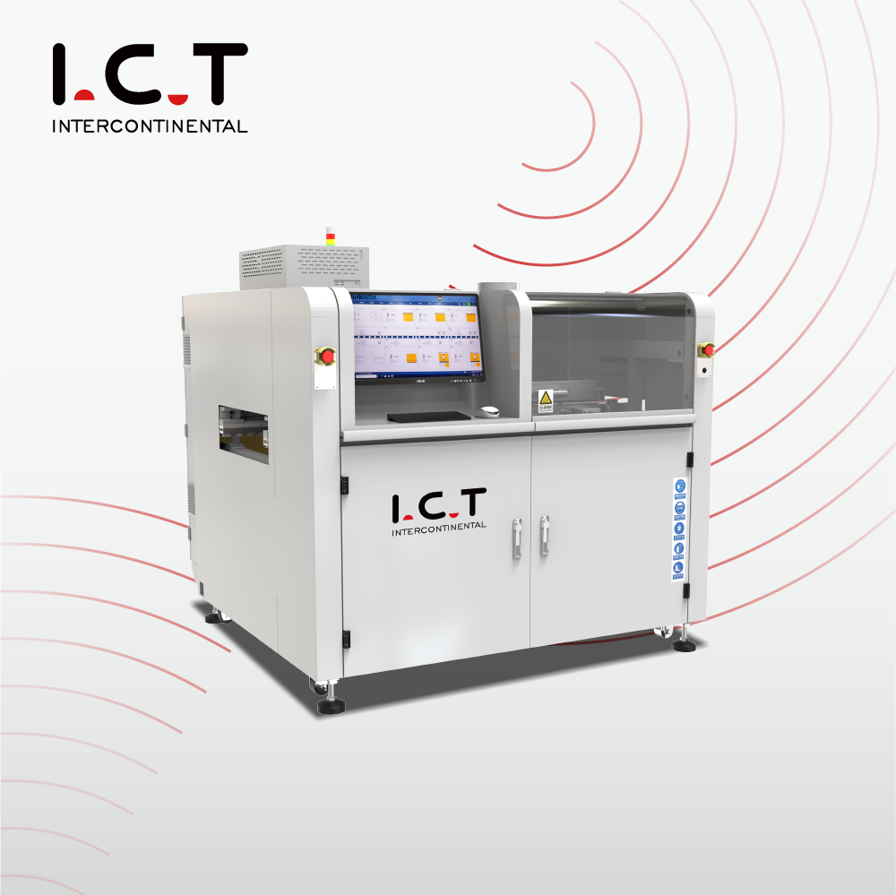 Напълно проектирана и произведена в Dongguan, I.C.T онлайн машината за селективно вълново запояване е истинската система за селективно запояване, създадена за SMT фабрики с голям обем и високо смесване, които отказват да направят компромис с качеството за сметка на скоростта. Печатната платка се плъзга непрекъснато по прецизен конвейер, докато свръхлекият портал от лят алуминий – задвижван от серво и линейни релси на Panasonic – доставя флюс и спойка точно до щифтовете. Вграденото азотно нагряване създава лъскави, пълни филета с практически нулеви отпадъци. Операторите контролират всеки детайл – пътища, температури, обем на пръскане, височина на вълната – на голям сензорен екран на Windows и запазват безкрайни програми за незабавна смяна. Автоматично калибриране на вълни, CCD на живо, немски реактивен клапан и титаниево гърне превръщат тази онлайн машина за запояване със селективна вълна в център за печалба 24/7.