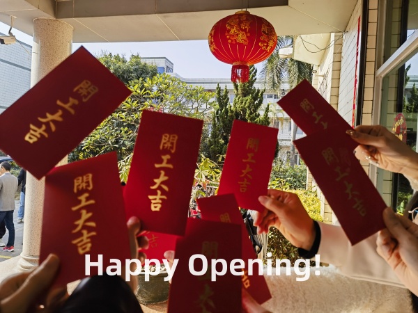 В китайската традиция първият работен ден след пролетния фестивал е важен повод, символизиращ нов старт и просперитет. За да отпразнуваме, нашият екип се събра за оживена церемония по откриването , представяйки процъфтяващите звуци на фойерверки, за да прогонят лошия късмет и да въведат в късмета. Многоочакваното разпределение на червения плик (Hóngbāo) донесе усмивки на лицата на всички, символизирайки благословиите и успеха за предстоящата година.
